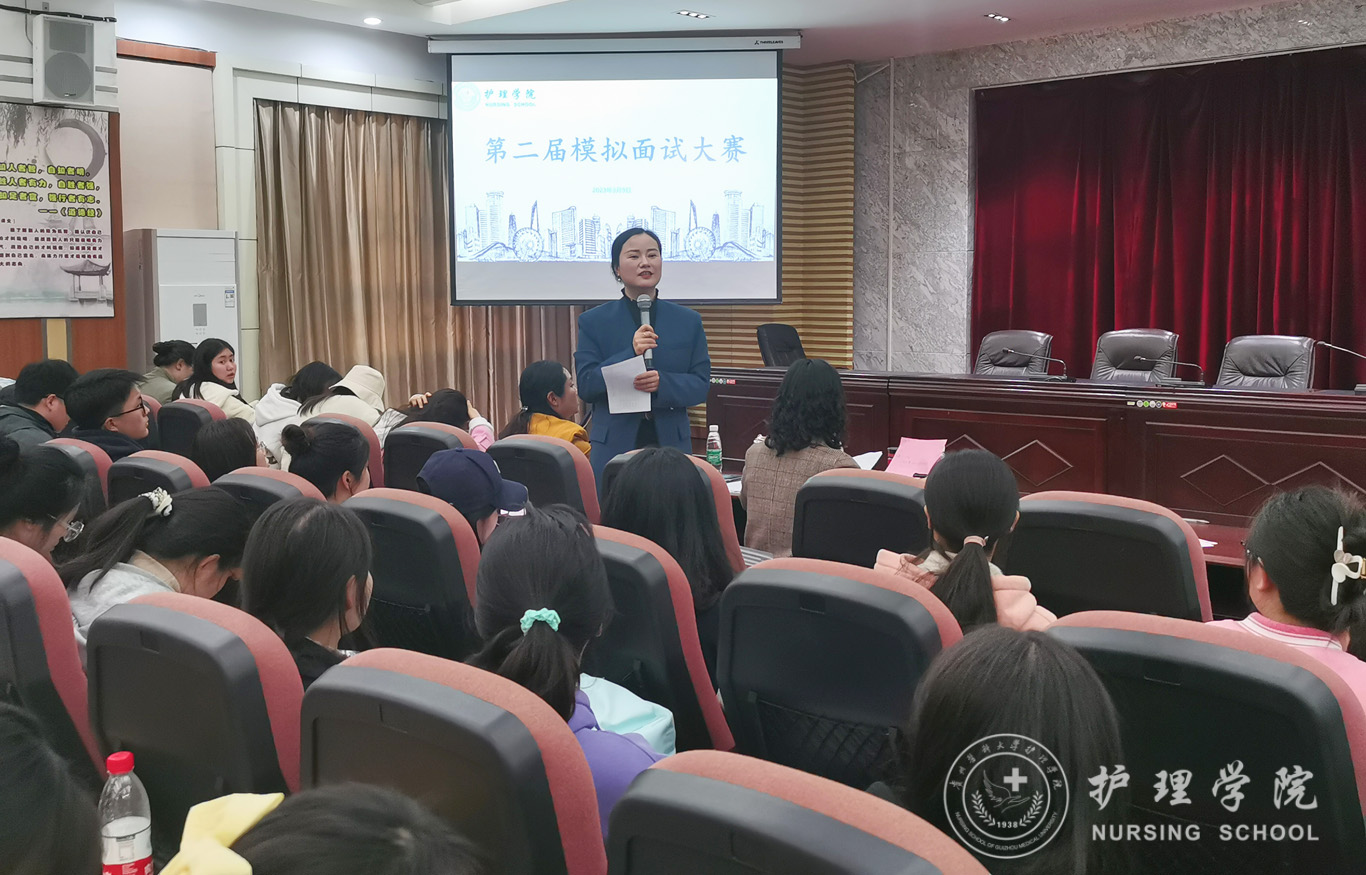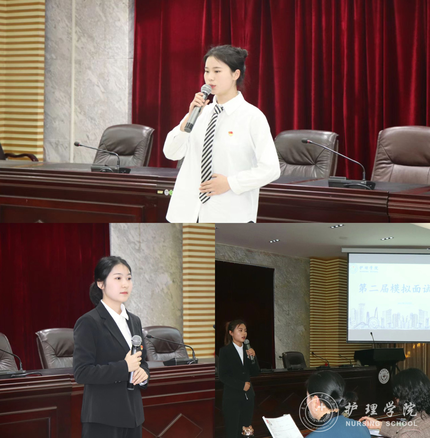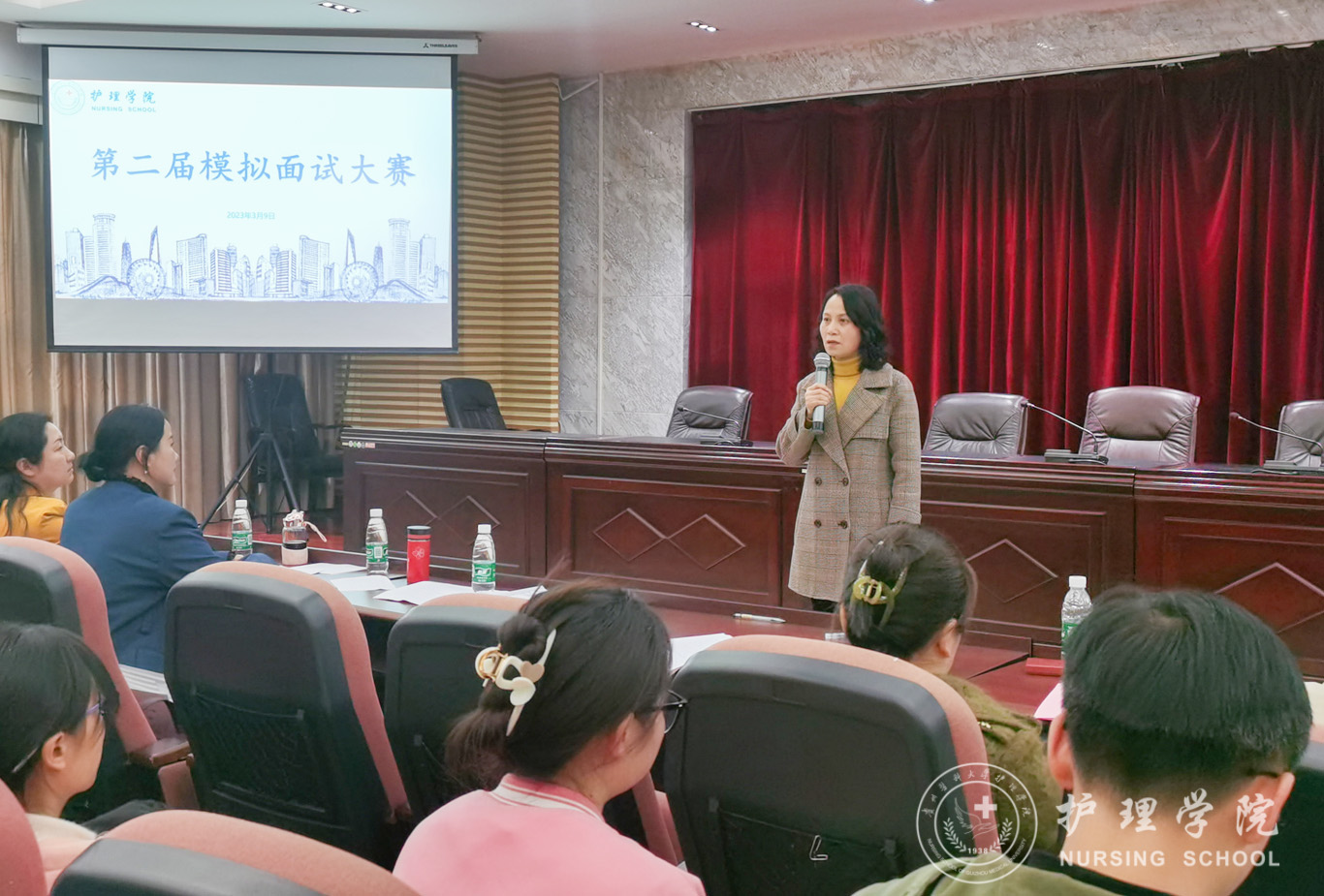 3月9日,为提升毕业生的竞聘能力与面试技巧,中国十大娱乐赌博城网址第二届模拟面试大赛决赛在北校区道德讲堂举行。中国十大娱乐赌博城网址党委书记杨英、党委副书记兼纪委书记何为、正科级组织员曾敏、护理人文教研室副主任张仁莉、护理学妇儿科教研室副主任徐锟、团委副书记王晓玲、辅导员杨叶卿、刘妍出席并担任评委,2019、2020级各班学生代表参加了现场观摩,本次比赛由助产学2020级赵雪同学主持。